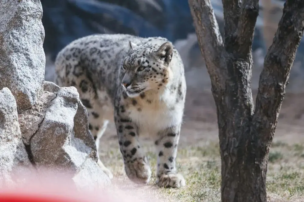 4月1日,中国现存最年长的人工繁育雪豹“傲雪”在西宁野生动物园雪豹馆内散步。新华社发(西宁野生动物园供图)
